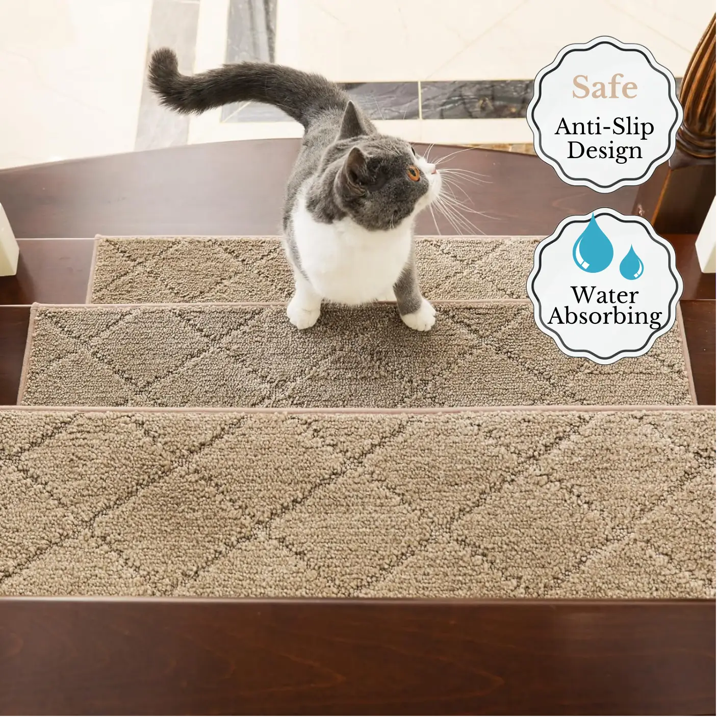 I love them, they stick well and can be washed in a washing machine. I washed mine after 4 months. Shake them out before washing. I washed them in COLD, Quick wash cycle, regular tide detergent, NO softener. Dry them on medium, no dryer sheets, for 10 minutes and then check every 5 minutes afterward. I damp-dried them and then hung them to dry the rest of the way on a drying rack in my garage. I have also dried them until they were fully dried, but I would keep checking on them so I did not over-dry them. The sticky silicon on the back will probably be covered in sand (dirt particles) and lint after washing and drying. Use a tape lint roller to remove anything stuck to the silicon after washing. This also happened to a couple of my treads while they were on the stairs if we tripped on them. Fur and dust eventually took over the sticky part. We used a tape lint roller on the back and they stuck right back on. These are worth the price, are made well, and stand up well to a crazy dog and kids! We bought the small landing rug also, it's my favorite and makes it all come together and look great!